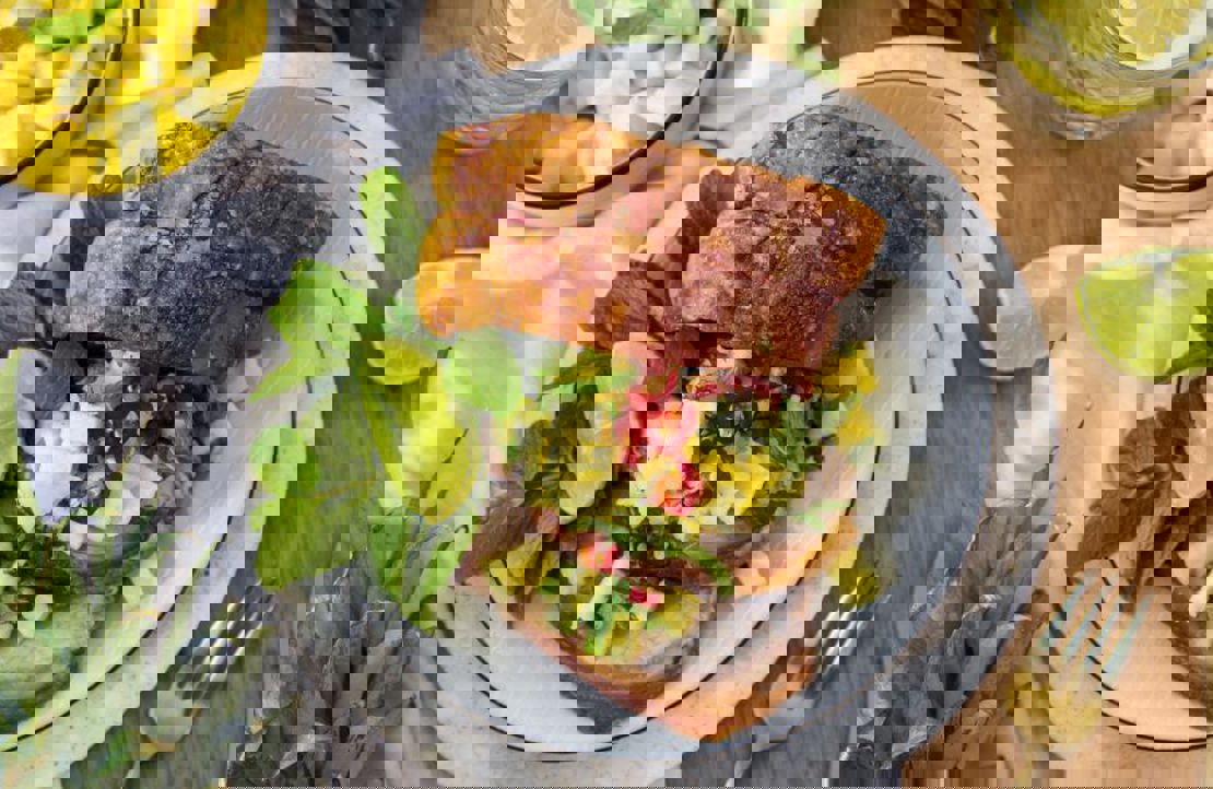 For a budget friendly meal, buy cheaper cuts of meat like skirt or flank steak from one of our butchers and tenderise it by using a marinade that contains fresh pineapple juice – the bromelain in it helps to break down the collagen that can make these steaks chewy. The upside to all this collagen is it adds lots of flavour; seared and thinly sliced, a flank or skirt steak might just become your spring barbecue favourite. Don’t have a juicer at home? Swing past Juicello and make sure you also pick up a refreshing sugarcane juice for the road.